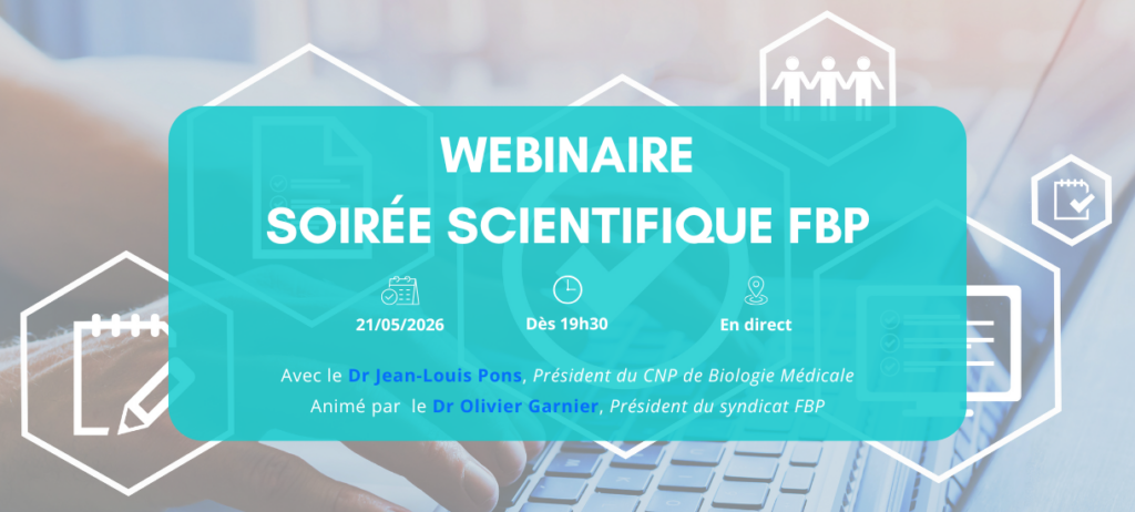 Animée par le Dr Olivier Garnier, président du syndicat FBP, cette soirée accueillera le Dr Jean‑Louis Pons, président du CNP de Biologie Médicale, qui partagera son expertise et répondra aux questions des participants en direct.